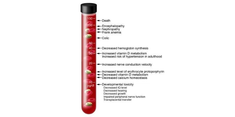 Khi độc tố chì tích tụ vào cơ thể, nếu không được đào thải ra ngoài mỗi ngày, nhiễm độc chì sẽ gây ra những biến chứng nguy hiểm như:
